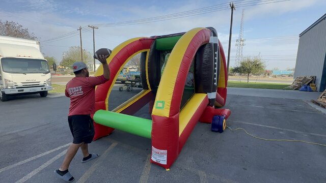 Ready to bring out the quarterback in everyone? Our Football Challenge Double inflatable game is the ultimate test of accuracy, speed, and friendly competition! Perfect for parties, school events, corporate gatherings, and sports-themed celebrations, this exciting interactive game lets two players compete side-by-side to see who has the best throw. 🎯