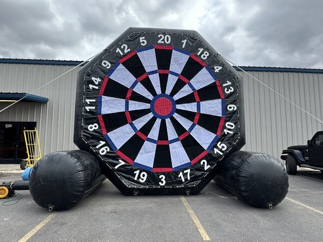 Kick your event up a notch with our Soccer Darts Game, a high-energy, interactive attraction that’s guaranteed to be a hit! Players take turns kicking velcro soccer balls at a giant inflatable dartboard, aiming for the highest score and bragging rights. It’s the perfect blend of soccer skills and classic darts, making it fun for kids, teens, and adults alike.